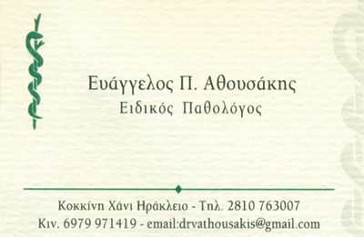 customer tabsContactPATHOLOGISTSHEALTHKokkini Xani, Heraklio, CreteHERAKLIOCRETE28107630076979971419drvathousakis [at] gmail.com Photos Facebook LikeGoogle Plus OneShare on FacebookTweet Widget